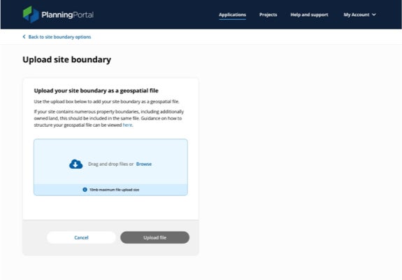 Read more about how to upload a site boundary and supporting information.